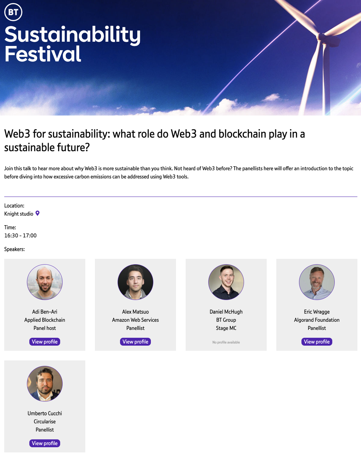 - Web3 for Sustainability at BT Sustainability Festival